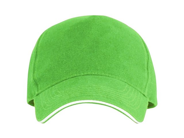Бейсболка из 5 панелей с контрастным сэндвичем. Четыре вышитых вентиляционных люверса. Застежка на липучку. |
