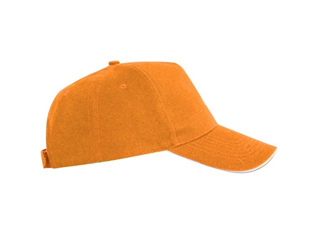 Бейсболка из 5 панелей с контрастным сэндвичем. Четыре вышитых вентиляционных люверса. Застежка на липучку. |