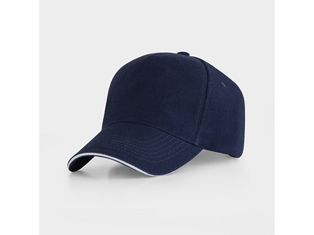 Бейсболка из 5 панелей с контрастным сэндвичем. Четыре вышитых вентиляционных люверса. Застежка на липучку. |