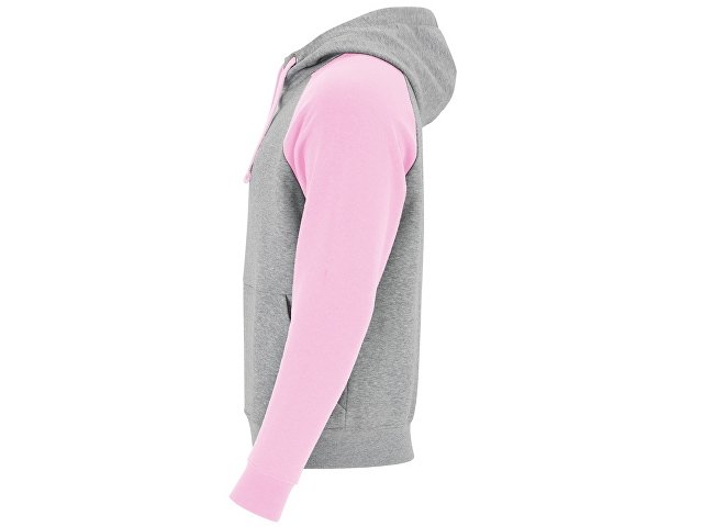 Худи с контрастным рукавом реглан. Капюшон с запахом, с контрастной подкладкой и шнурком. На полочке карман кенгуру. Манжеты рукавов и низ изделия из риба 1х1.