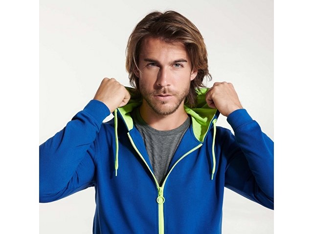 Толстовка на молнии из френч терри без начеса с деталями неонового цвета. Центральная молния с контрастным пуллером. Подкладка капюшона из микроперфорированного полиэстера контрастного неонового цвета. Шнур капюшона и айлетсы контрастного неонового цвета. Риб 1х1 на манжетах и внизу изделия. Два боковых кармана с широкой листочкой. Укрепляющая строчка внутри горловины. |