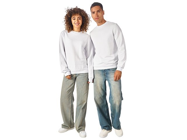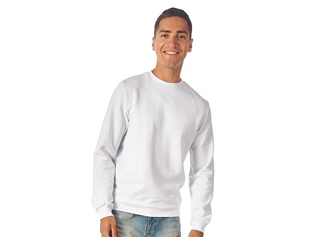 Свитшот из плотного 3х ниточного хлопкового футера. Горловина, манжеты и низ отделан рибом 2х2. Горловина спинки внутри дополнительно укреплена тесьмой с выработкой елочка. Полотно из утяжеленного хлопкового футера внутри с петельками без начеса.