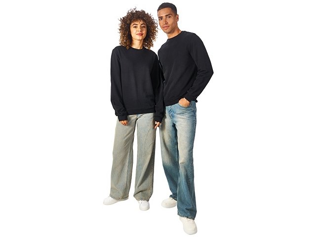 Свитшот из плотного 3х ниточного хлопкового футера. Горловина, манжеты и низ отделан рибом 2х2. Горловина спинки внутри дополнительно укреплена тесьмой с выработкой елочка. Полотно из утяжеленного хлопкового футера внутри с петельками без начеса.