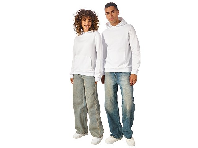 Толстовка с капюшоном (худи) из плотного хлопкового 3х ниточного футера. В капюшоне подкладка в тон, а горловина спинки дополнительно укреплена тесьмой с выделкой елочка. Капюшон без шнурков – ничего не отвлекает от вашего брендирования. Манжеты и низ изделия отделаны рибом 2х2. Глубокий комфортный карман кенгуру на полочке. Полотно из утяжеленного хлопкового футера внутри с петельками без начеса.