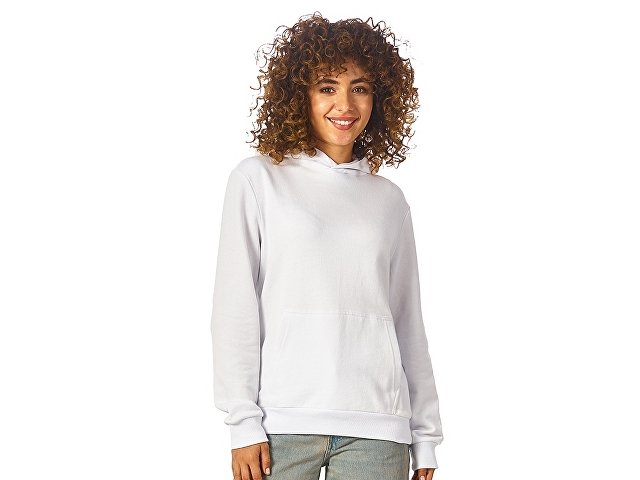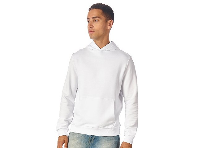 Толстовка с капюшоном (худи) из плотного хлопкового 3х ниточного футера. В капюшоне подкладка в тон, а горловина спинки дополнительно укреплена тесьмой с выделкой елочка. Капюшон без шнурков – ничего не отвлекает от вашего брендирования. Манжеты и низ изделия отделаны рибом 2х2. Глубокий комфортный карман кенгуру на полочке. Полотно из утяжеленного хлопкового футера внутри с петельками без начеса.
