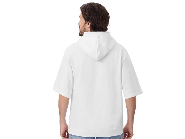 Худи с коротким рукавом выполнено из хлопкового френч терри с петельками на изнаночной стороне. Подкладка капюшона выполнена из основного полотна для объемной посадки. Модель комфортной и актуальной посадки оверсайз отлично подходит для обычной жизни и в качестве промо мерча.