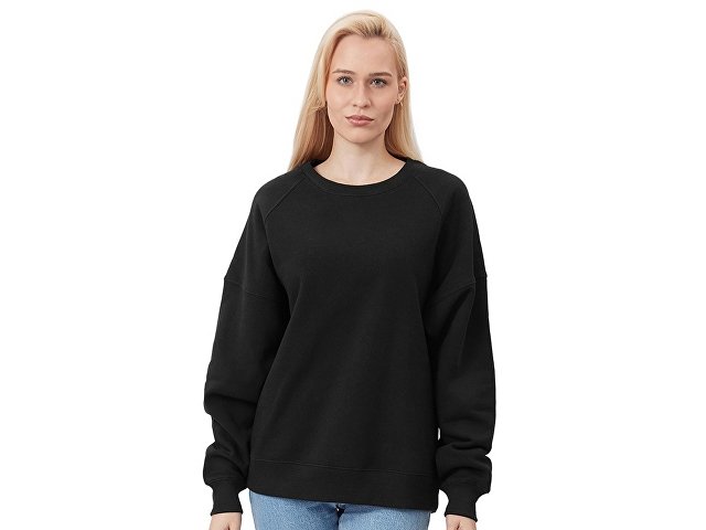 Главная особенность этого свитшота оверсайз — необычный рукав из двух частей: верхней — реглан до середины предплечья — и нижней, которая заканчивается резинкой. Благодаря такому необычному крою свитшот сидит комфортно по фигуре.