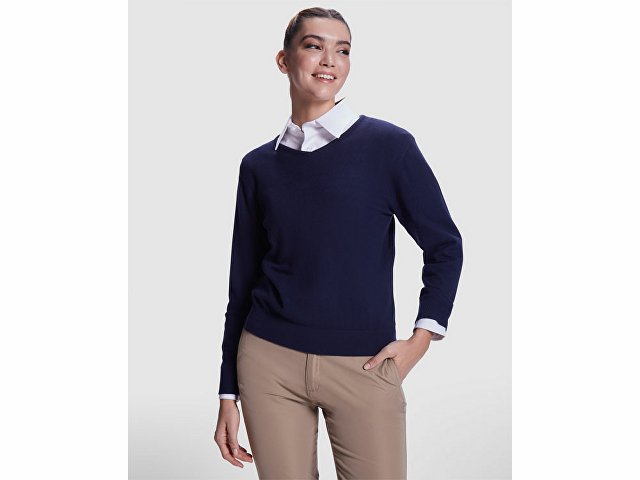 Джемпер c V вырезом тонкой вязки для женщин. Отделка рибом 1х1 по горловине, низу и манжетам |