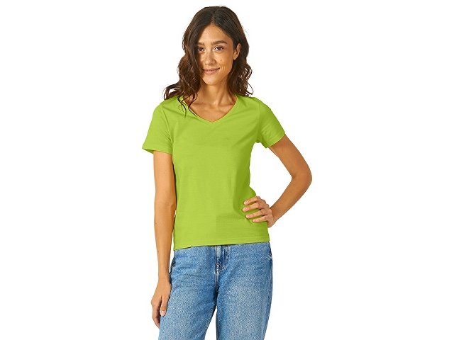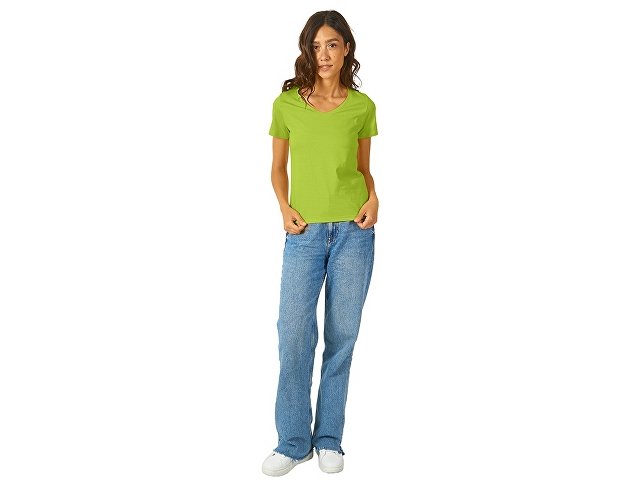 Женская футболка из натурального хлопка с элегантным V-образным вырезом. Материал отлично подходит для нанесения рекламной информации. Натуральная ткань не вызывает раздражения кожи. |