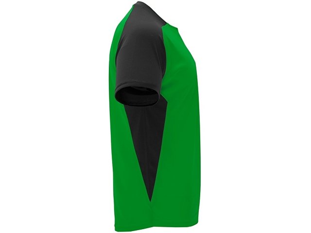 Спортивная футболка с коротким рукавом реглан. Круглый вырез горловины. Контрастные рукава и боковые вставки. |