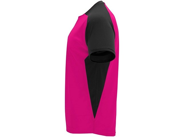 Спортивная футболка с коротким рукавом реглан. Круглый вырез горловины. Контрастные рукава и боковые вставки. |