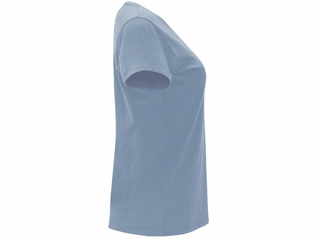 Женская приталенная футболка. Круглый вырез горловины обработан рибом 1х1. Шов горловины укреплен тесьмой. |