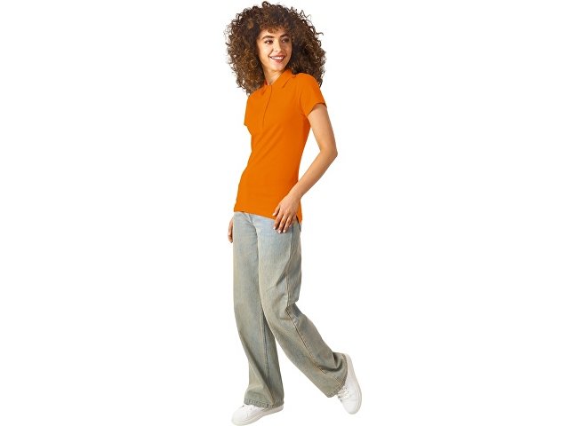 Женская рубашка-поло First. Воротник 1х1. Обшивка внутри воротника. Мужская и детская модели с 2 пуговицами, женская - с 4 пуговицами. Пуговицы с гравировкой в тон. Пике, 100% хлопок. 160 г/м2.