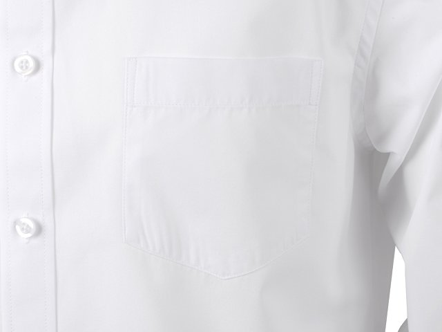 Рубашка мужская с длинным рукавом на семи пуговицах. Накладной карман на груди слева, на спинке складки из-под кокетки, манжеты с двумя пуговицами и пуговица по планке рукава. |