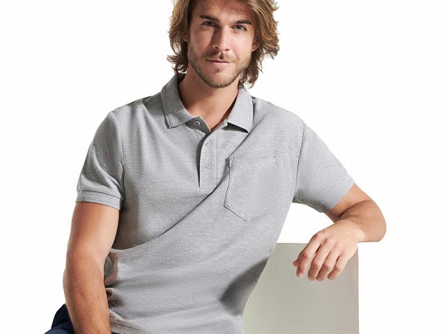Рубашка поло с коротким рукавом и накладным карманом. Воротник и манжеты из риба 1х1 со структурными полосками по краю. Планка застегивается на три пуговицы. По горловине укрепляющая тесьма. |