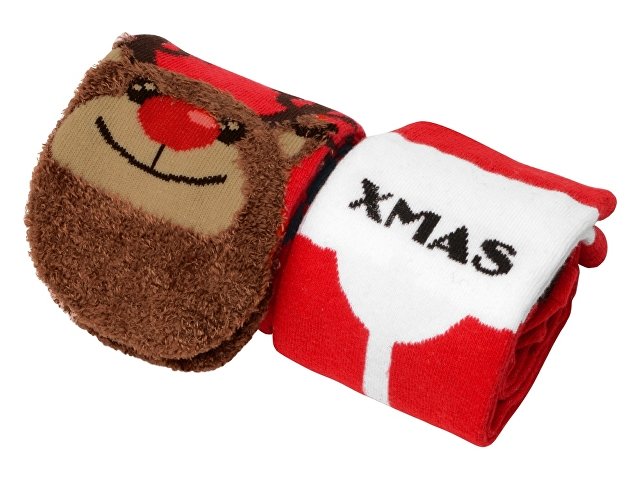 Рождественские носки прекрасно подойдут на роль подарка, который создает праздничное настроение. Этот набор состоит из двух пар, которые упакованы в мешочек из натурального хлопка. Одна пара украшена мягкими пушистыми мордочками рождественских оленей, а принт на второй изображает сапожки Санта Клауса. Ткань - смесь хлопка, полиэстера и спандекса, что обеспечивает носкам износостойкость, а мягкая широкая резинка – удобную посадку по ноге. Мешочек-упаковку можно брендировать по вашему желанию.