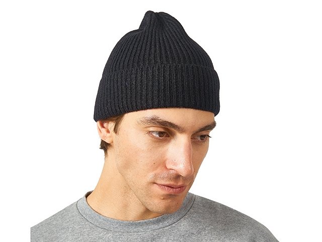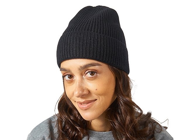 Вязаная шапка из мягкого трикотажа в рубчик. Шапка связана рибом 1х1. |