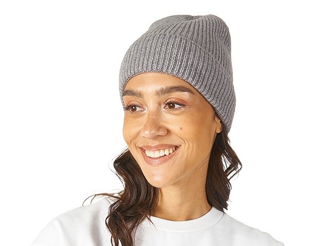 Вязаная шапка из мягкого трикотажа в рубчик. Шапка связана рибом 1х1. |
