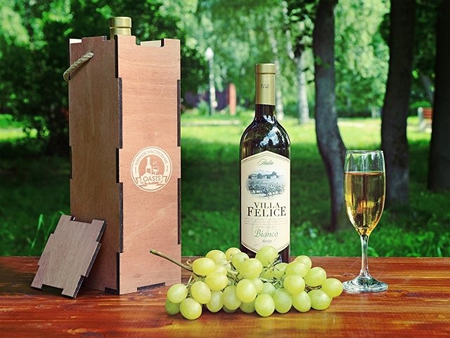 Деревянная коробка-пенал подчеркнет эстетическую значимость вашего сувенира. Она проста в использовании, крышка упаковки легко закрывается надежно фиксирует бутылку. Таким образом, ваш презент переходит из обычного подарка в разряд премиум и приобретает благородный и презентабельный вид.