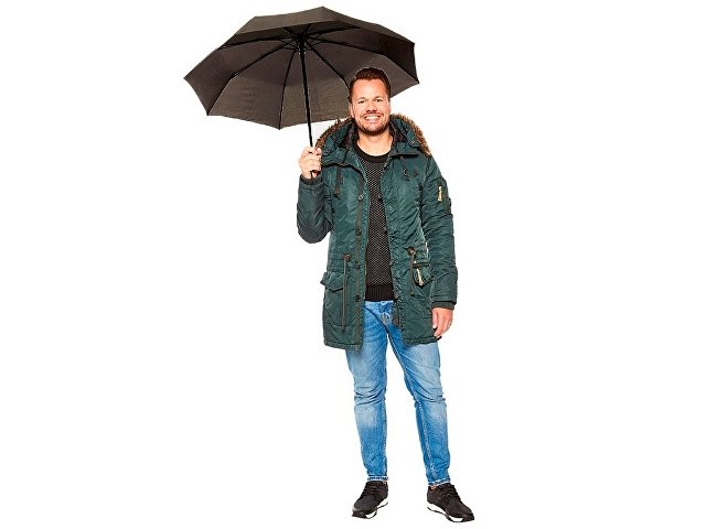 Добротный автоматический зонт с куполом из эпонжа и гибкими спицами из стекловолокна спасет от дождя и выстоит против порывов ветра. Чехол в комплекте |