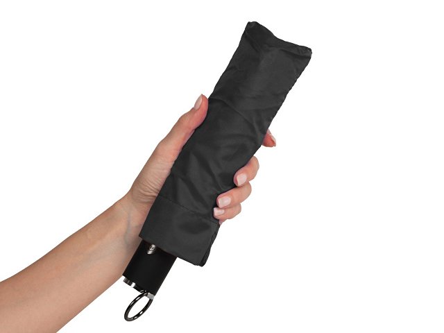 Самый компактный зонт-автомат. Длина в сложенном виде 25 см. Кольцо на ручке удобно для подвешивания зонта при сушке или хранении. Широкий фиксирующий ремешок дает дополнительные возможности для нанесения вашего логотипа. |