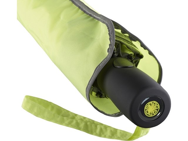 Зонт быстро открывается нажатием кнопки на ручке. Система защиты от ветра сохранит зонт в любую погоду. По краю купола нанесена светоотражающая отделка для безопасности в темное время суток. |