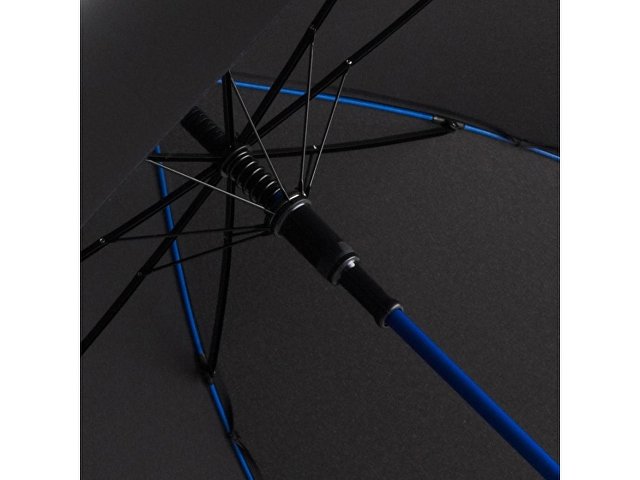 Полуавтоматический зонт быстро раскрывается при нажатии кнопки. Контрастные цветные спицы окрашены в тон трости.