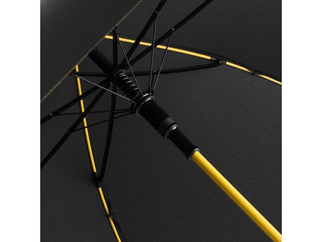 Полуавтоматический зонт быстро раскрывается при нажатии кнопки. Контрастные цветные спицы окрашены в тон трости.
