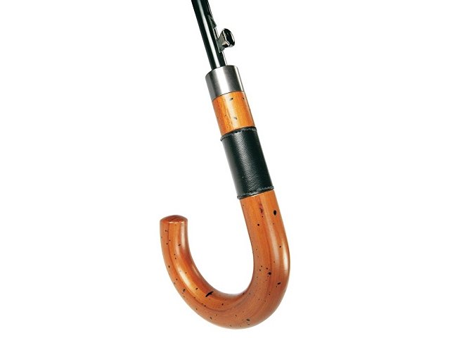 Купол этого полуавтоматического зонта покрыт тефлоном, который делает ткань более стойкой к промоканию и пятнам. Стильная ручка из натурального дерева со вставкой из искусственной кожи. |