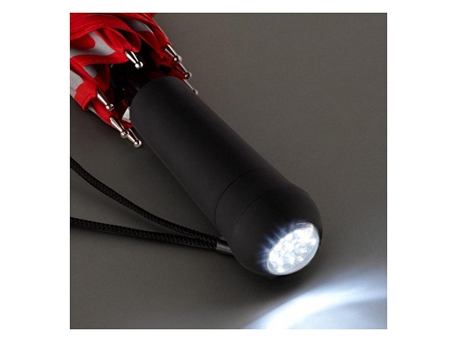 Полуавтоматический зонт-трость со светоотражающими элементами на куполе из запатентованного материала 3M™ Scotchlite™ обеспечит дополнительную защиту в темное время суток. В ручку встроен LED фонарик, который работает в двух режимах - постоянный белый свет и мерцающий красный. Батарейка в комплекте. |