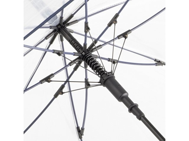 Зонт-трость с прозрачным куполом и контрастными деталями легко открывается нажатием кнопки на ручке. Каркас выполнен из прочной долговечной гальванизированной стали. Благодаря гибким спицам из стекловолокна зонту не страшны порывы ветра. |