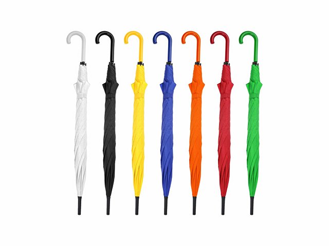Автоматический зонт с тканью и ручкой в тон. Спицы и наконечники черного цвета. Застежка на липучке. 105 см в диаметре. |