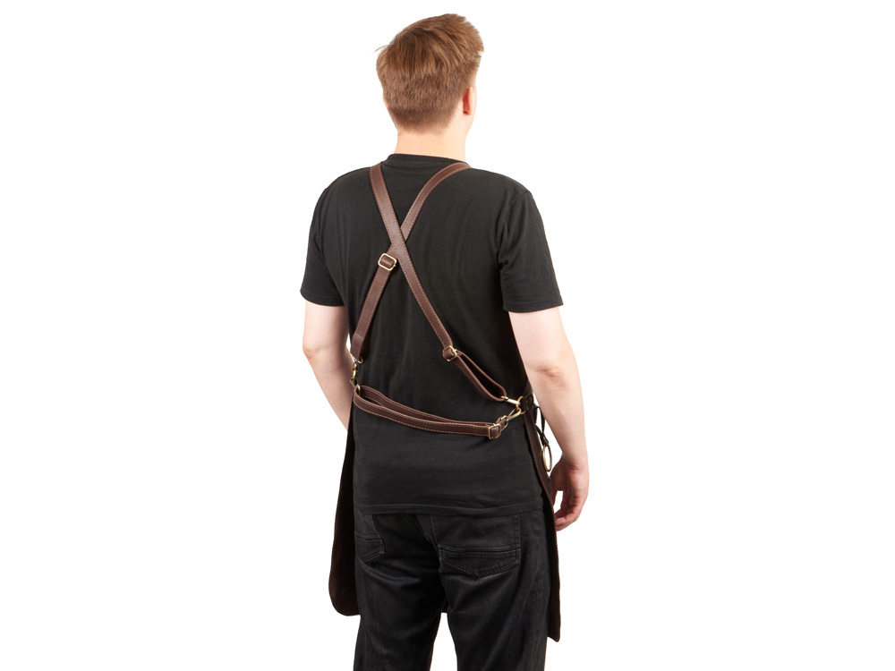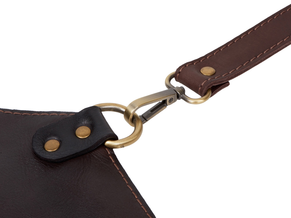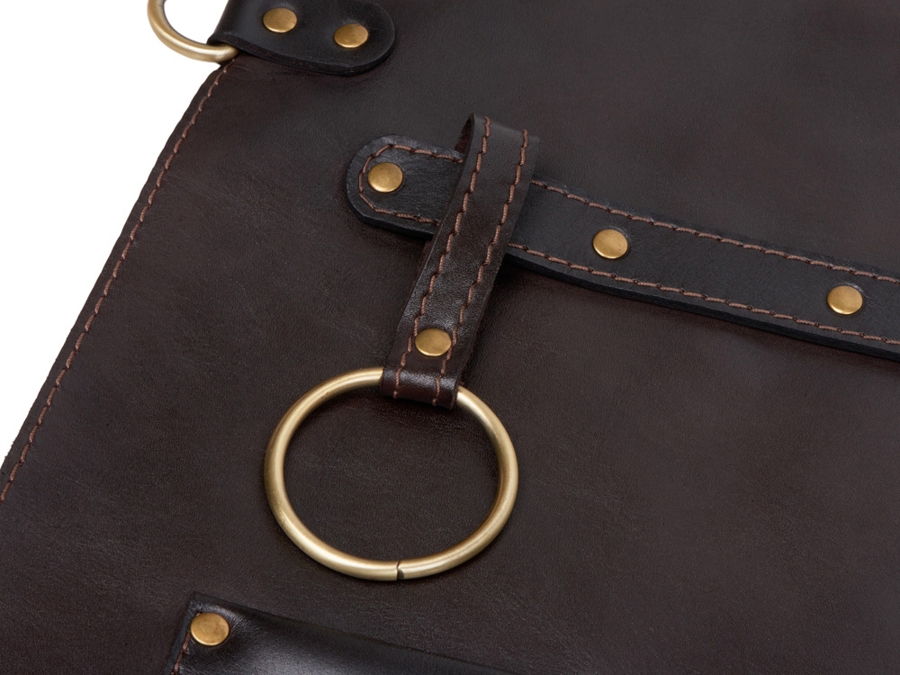 - Долговечная фурнитура: Металлическая фурнитура из сплава ЦАМ с антикованным покрытием не только делает фартук более прочным, но и добавляет ему строгий и классический вид.