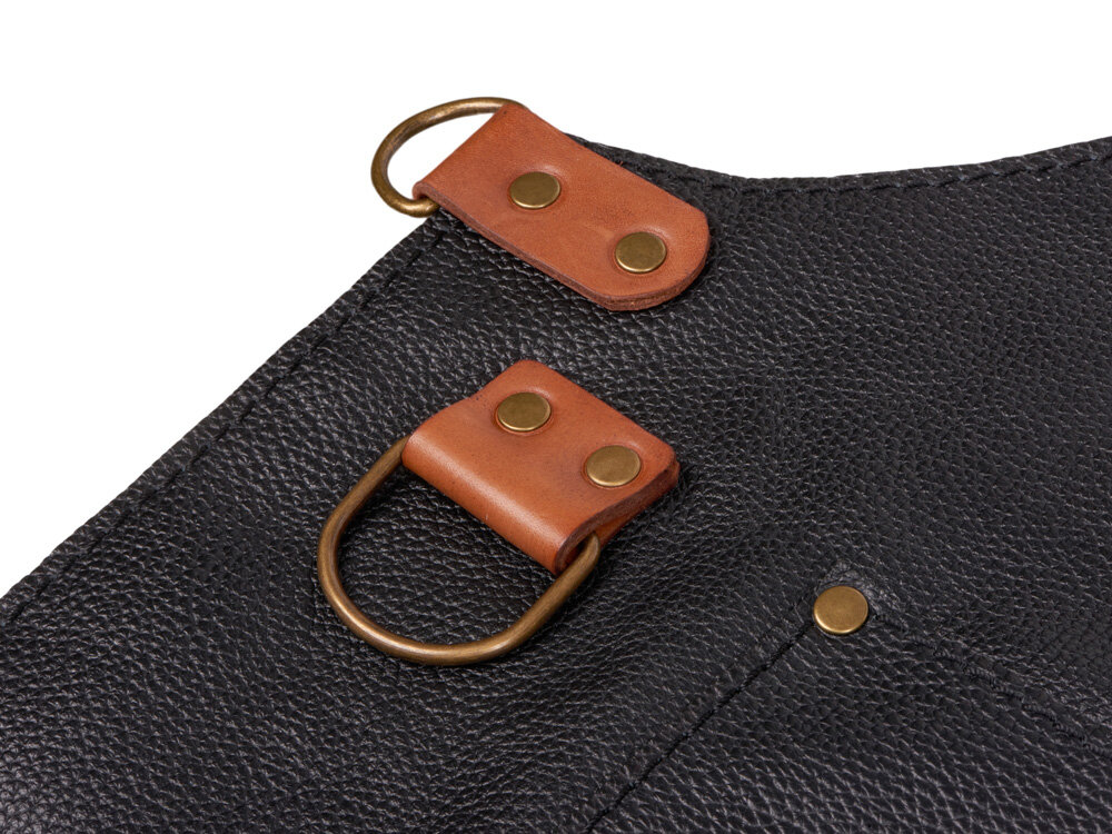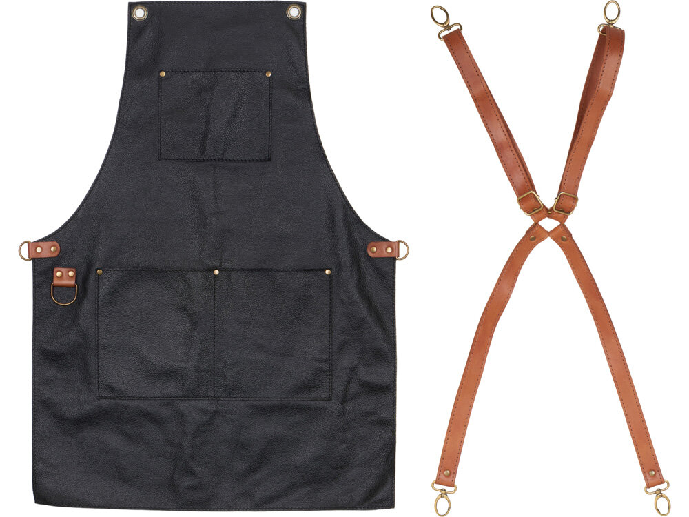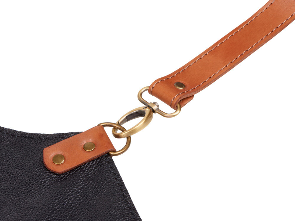 - Цвет: черный фартук с ремнями светлого бука, добавляющими яркий акцент.