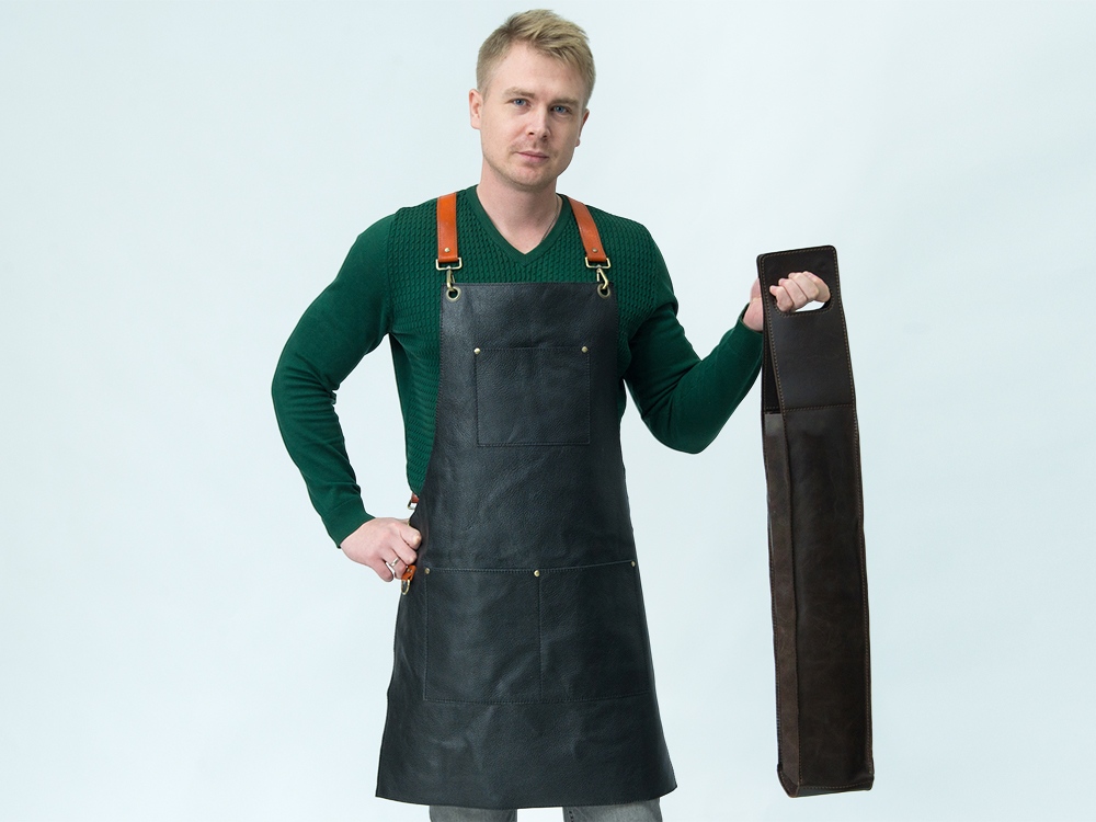 Погрузитесь в мир кулинарного искусства с нашим стильным набором, который включает фартук из кожи флотер и элегантный футляр-тубус.
