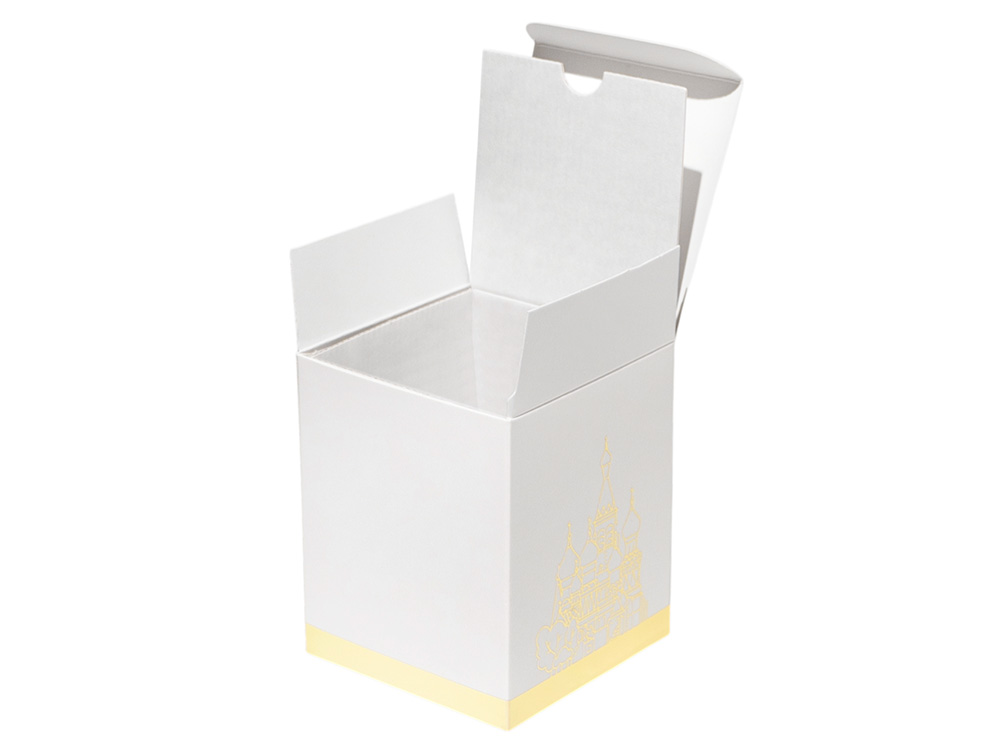 Коллекция аромасвечей Exclusive является уникальной не только из-за ароматов коллекции, но и благодаря тщательно разработанному дизайну упаковки, которая является напоминанием о том, что бренд Lights of Moscow - это ручное российское производство в самом центре Москвы. Белая коробка оформлена ярким золотым фольгированием, на левой стороне которой изображен Храм Василия Блаженного - одна из главных достопримечательностей на Красной площади в Москве.