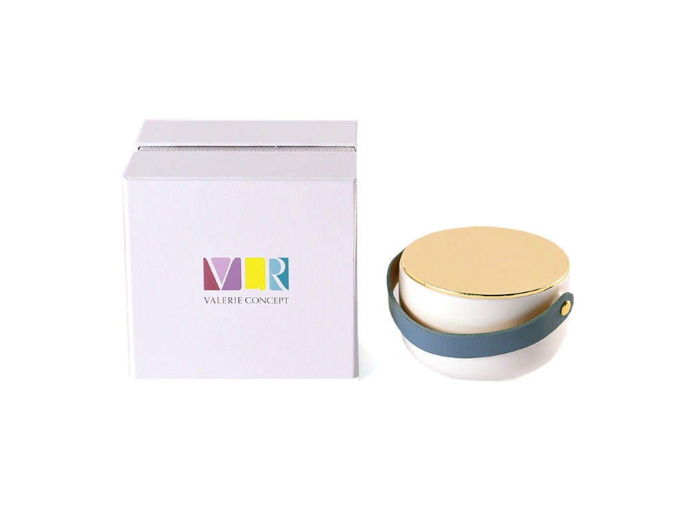 Стильная свеча в фарфоровом кашпо с крышкой и кожаными ручками от Valerie Concept. Изготовлена из натурального соевого воска с хлопковым фитилем, подарит вам долгие часы наслаждения и умиротворения, благодаря нежному аромату с нотками чарующих цветов и хлопка.
