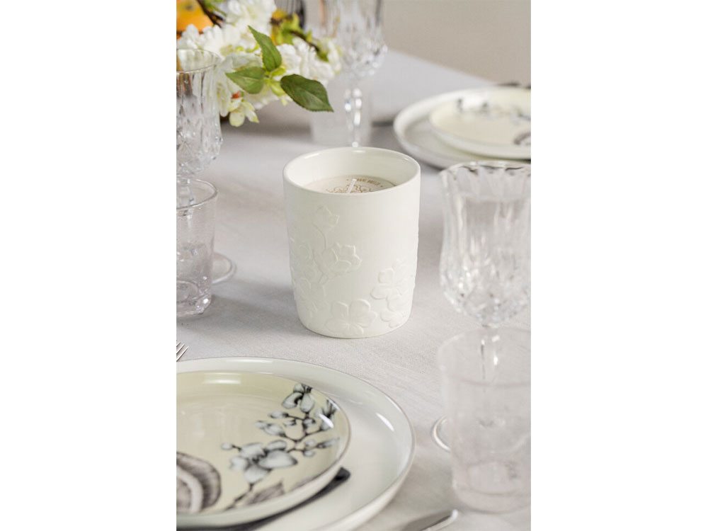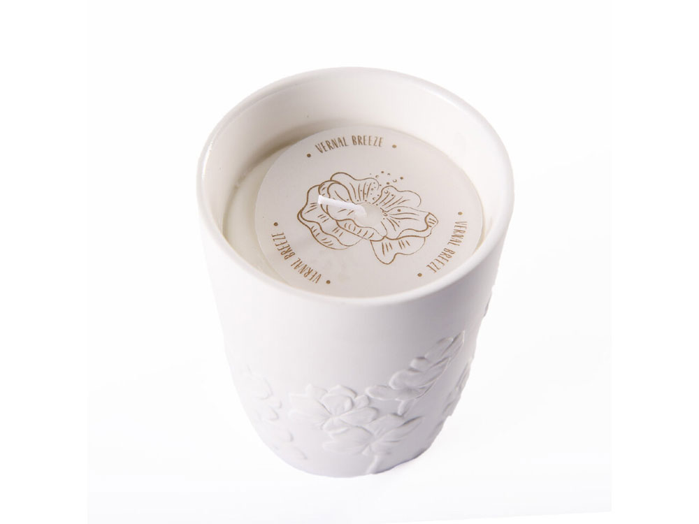 Ароматическая свеча с цветочным ароматом в фарфоровом кашпо от Valerie Concept. Кашпо выполнено из высокотемпературного прочного фарфора, украшено объёмным цветочным барельефом. Свеча из натурального соевого воска с хлопковым фитилем, подарит вам долгие часы наслаждения и умиротворения, благодаря нежному аромату с нотками чарующих цветов и хлопка.