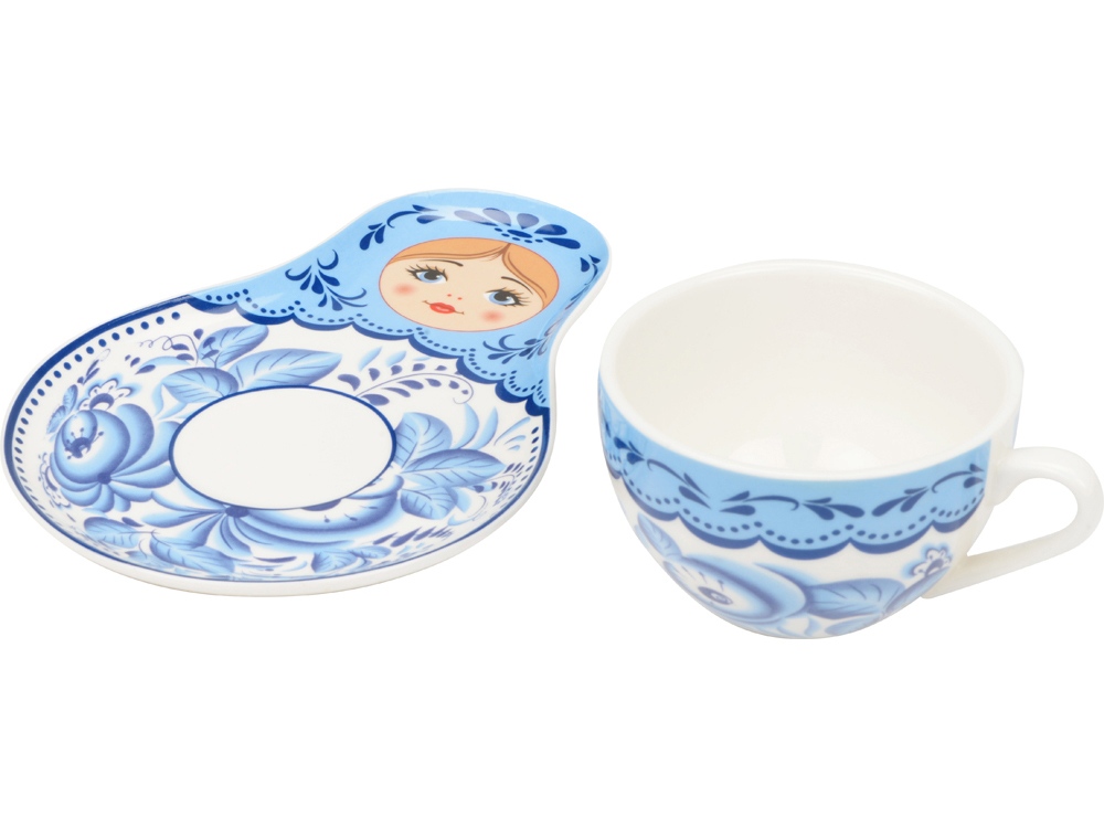 В наборе вы найдете необычную чайно-кофейную пару с подставкой в виде русской Матрешки, которая является одним из главных символов России и чай Малина с мятой травяной, 70 г.
