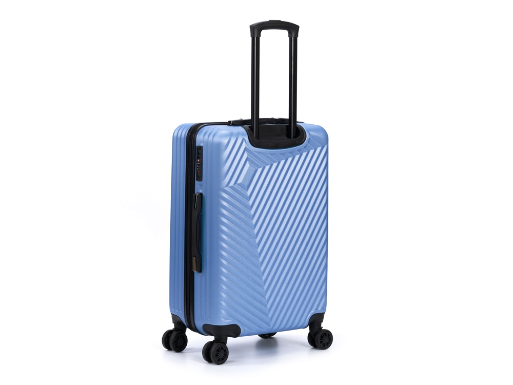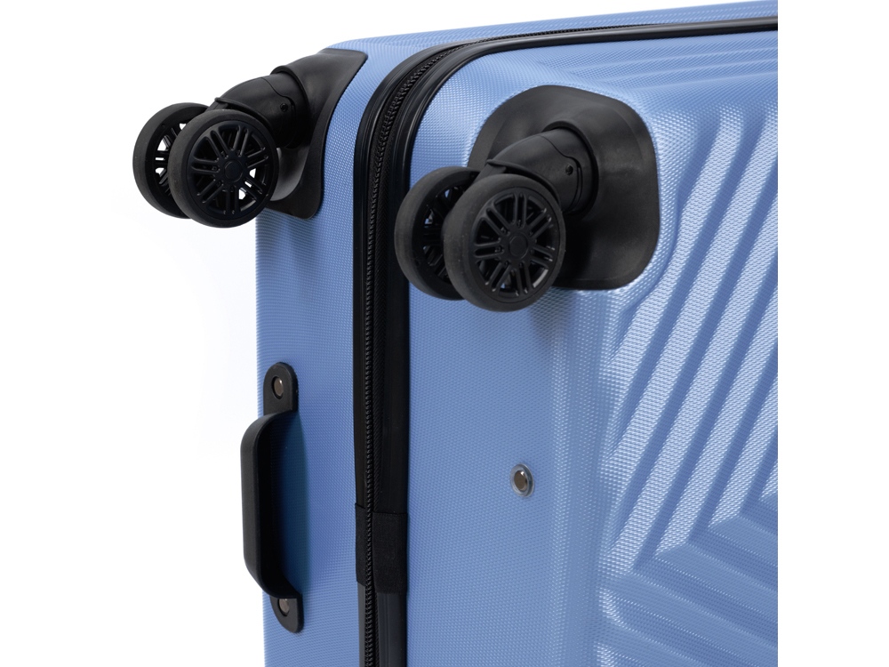 Легкая регулируемая телескопическая алюминиевая ручка и система из 8 колес, вращающихся на 360 градусов, обеспечивает мягкий ход и свободное движение во всех направлениях.