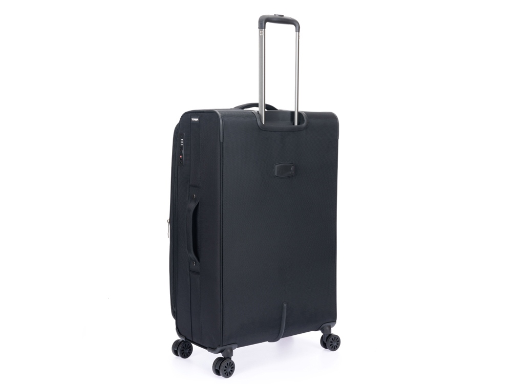 Легкая регулируемая телескопическая алюминиевая ручка и система из четырёх двойных колёс, вращающихся на 360 градусов, обеспечивает мягкий ход и свободное движение во всех направлениях.