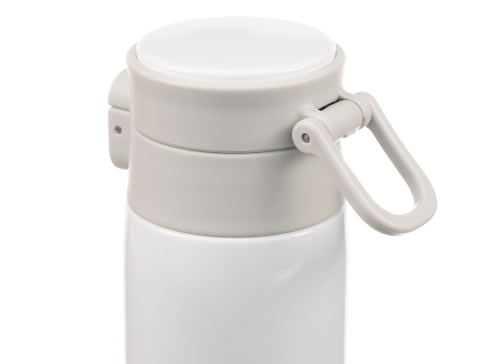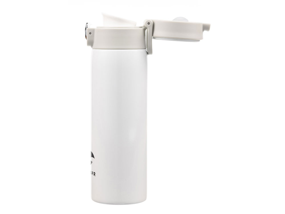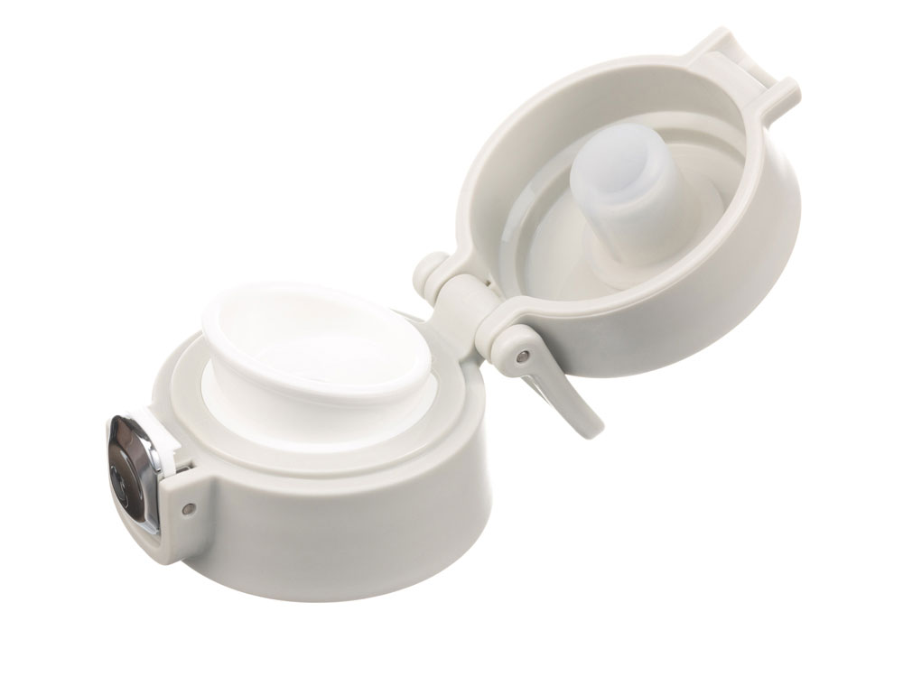 • Конструкция крышки позволяет открывать термокружку в одно касание и одной рукой – достаточно нажать на кнопку, верхняя крышка откинется на 180 градусов и автоматически зафиксируется в открытом положении.