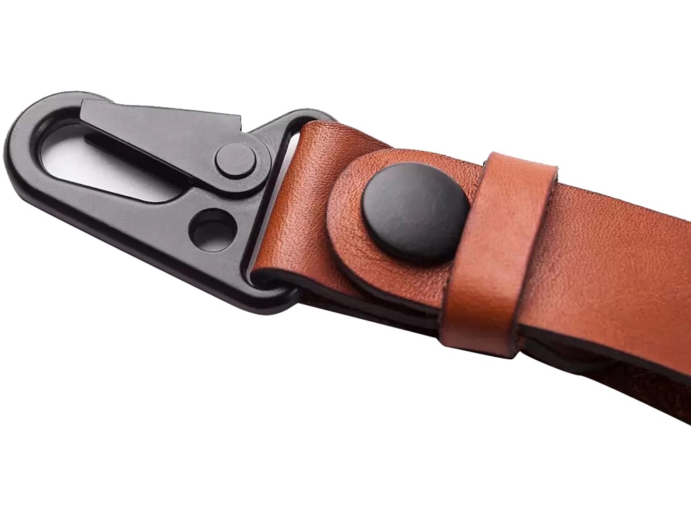 Ремешок сшит из прочной кожи оранжевого цвета. Оборудован надёжным металлическим карабином, самопроизвольное расцепление которого невозможно. Ключи, прицепленные к нему, обречены вечно храниться в глубинах сумки или кармана джинсов, и у них нет ни единого шанса потеряться. Прицепить ремешок можно к шлёвке джинсов или к куртке. |