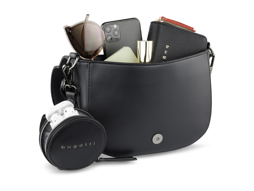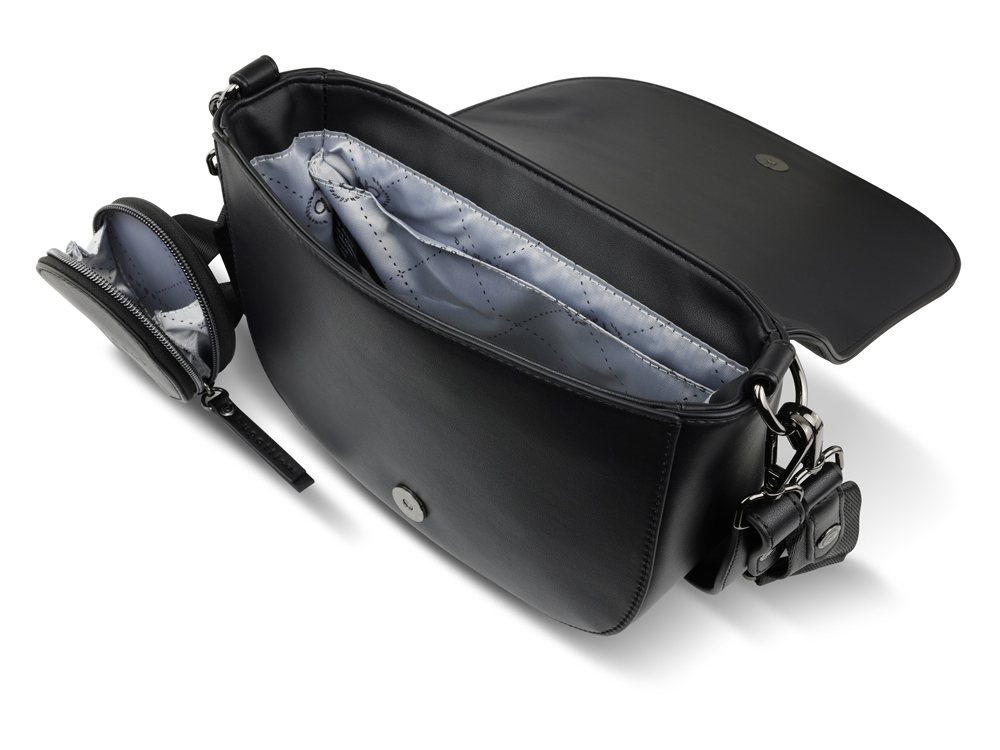 Внешняя организация: съёмный регулируемый плечевой ремень (до 50 см), съёмный регулируемый плечевой ремень (до 140 см) со съёмным кошельком на молнии