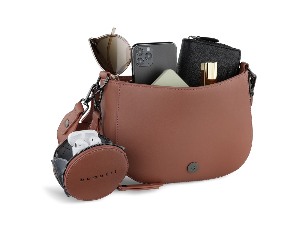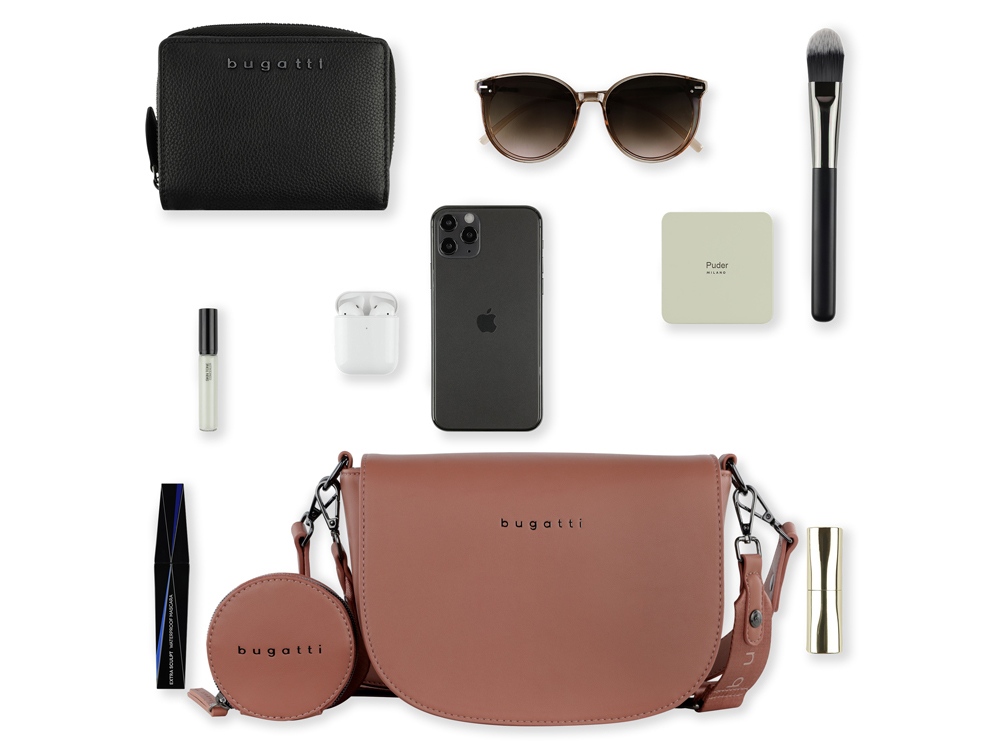 Внешняя организация: съёмный регулируемый плечевой ремень (до 50 см), съёмный регулируемый плечевой ремень (до 140 см) со съёмным кошельком на молнии