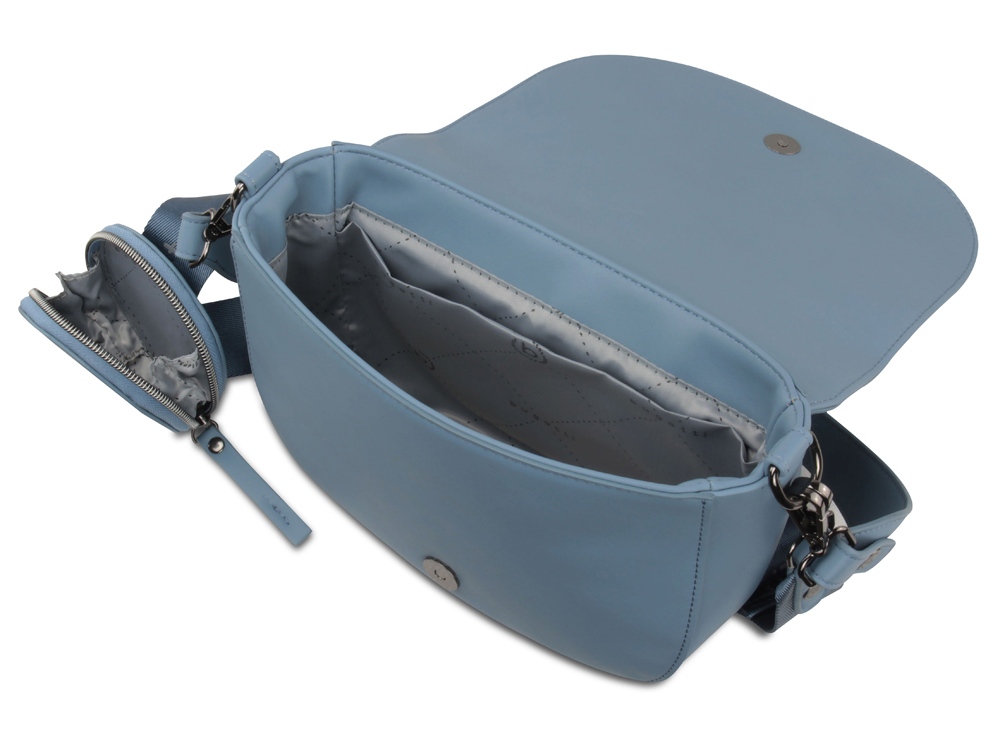 Внешняя организация: съёмный регулируемый плечевой ремень (до 50 см), съёмный регулируемый плечевой ремень (до 140 см) со съёмным кошельком на молнии