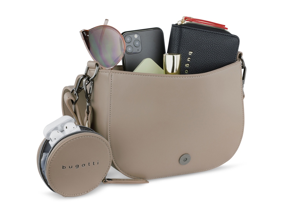 Внешняя организация: съёмный регулируемый плечевой ремень (до 50 см), съёмный регулируемый плечевой ремень (до 140 см) со съёмным кошельком на молнии