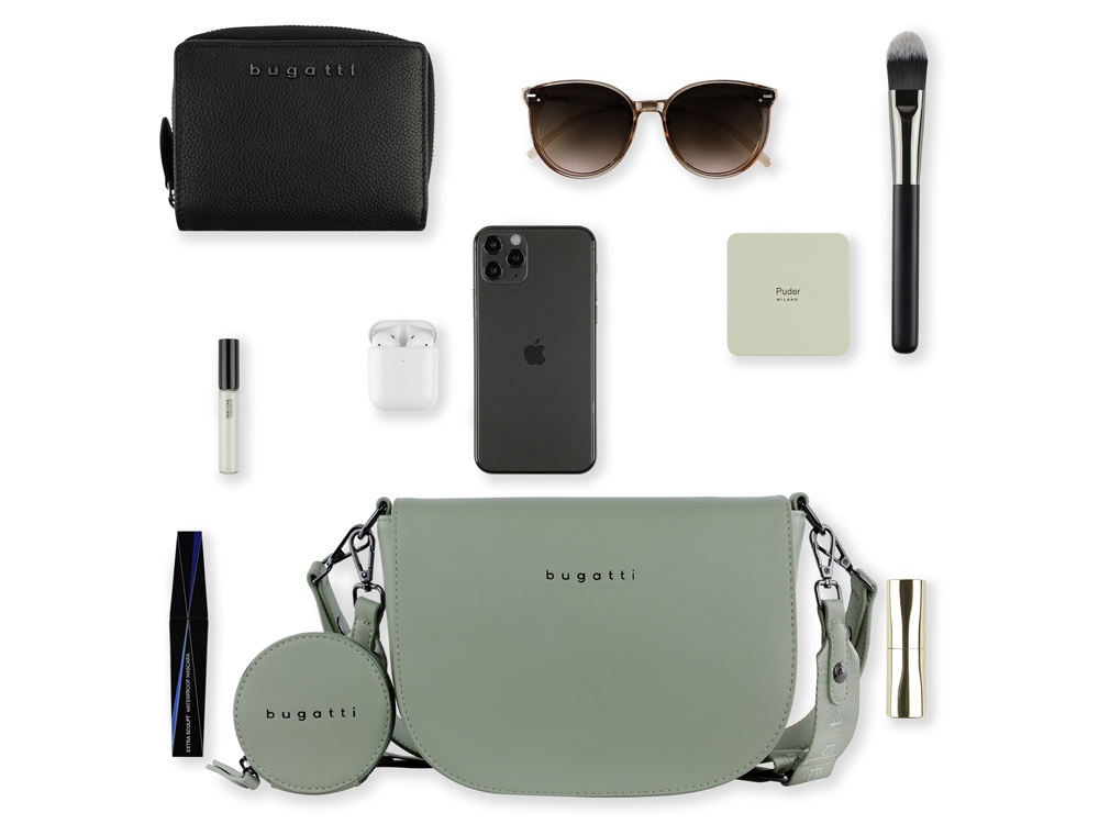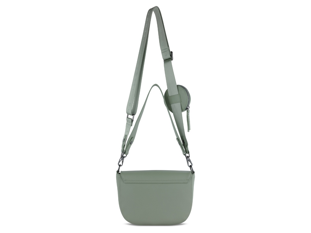 Внешняя организация: съёмный регулируемый плечевой ремень (до 50 см), съёмный регулируемый плечевой ремень (до 140 см) со съёмным кошельком на молнии