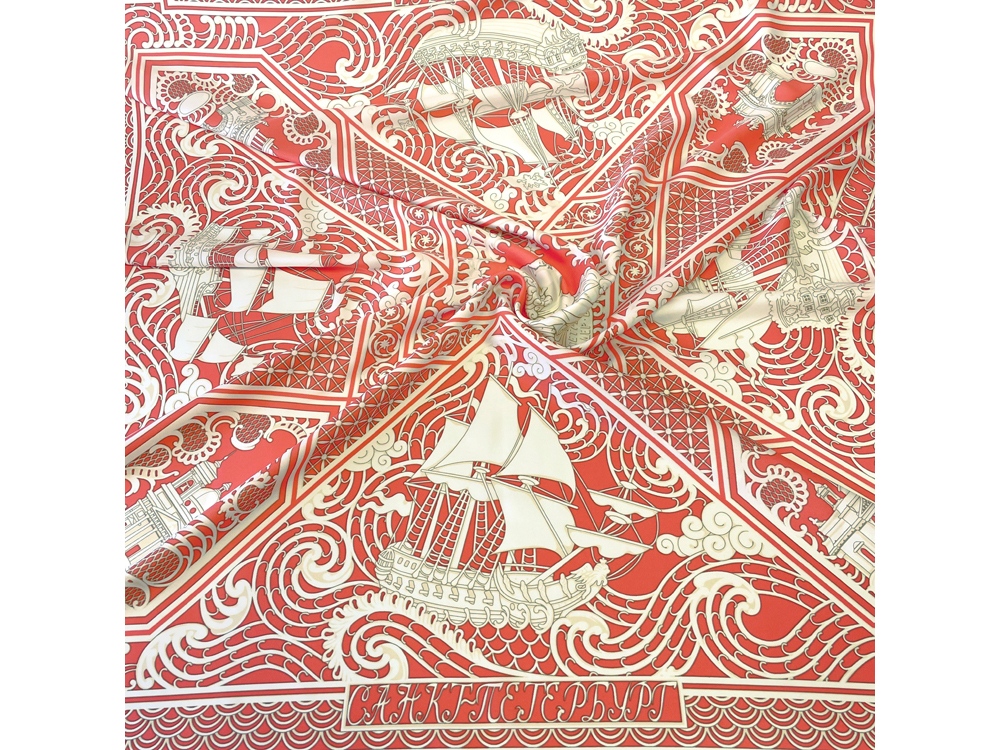 Тематика платка - Петровский Флот. В центре - декоративная резная пластина в пышном обрамлении с профилем великого русского самодержца Петра I.