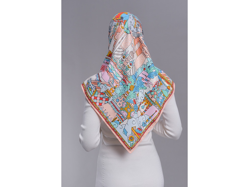 Платок Царьград создан в партнерстве с одноименным загородным курортом, где чтут лучшие обычаи русского гостеприимства. Дизайн платка обращен к воплощению народной традиции чародейства и сказки. Сюжет иллюстрирует фольклорную сцену из произведения Сивка-Бурка о победе истинного чувства и исполнении желаний.